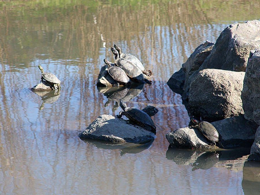 水生植物が植わり、カワセミなどの野鳥も飛来する